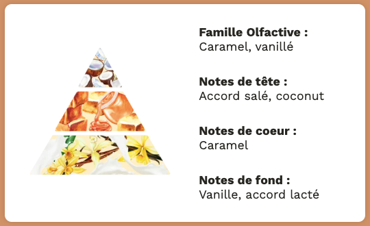 Un vrai délice pour les amateurs de douceurs, cette fragrance capture l'essence du caramel au beurre salé. Les notes salées initiales se mêlent à une riche harmonie de caramel et de vanille, créant une expérience gourmande qui évoque des souvenirs de desserts indulgents.
