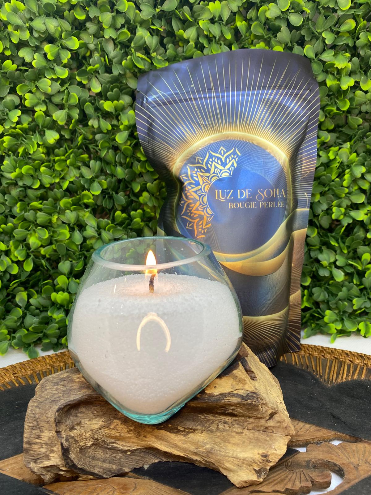 Libérez votre créativité avec le sachet bougie perlée 250g (Blanc) ⚪️ LUZ DE SOLIA. Ce sachet contient des perles de cire naturelles et rechargeables, offrant jusqu’à 75 heures de combustion. Parfait pour tous types de récipients, il est également waterproof et vous permet de changer de parfum à volonté.
