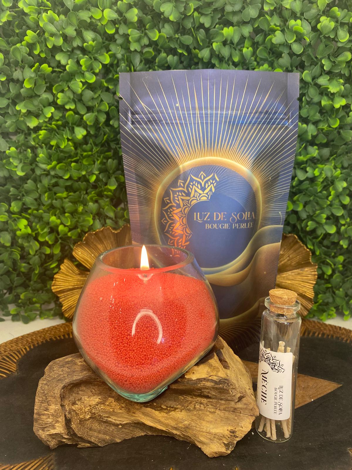 Sachet bougie perlée (Rouge) 250g 🔴 + 10 mèches inclus